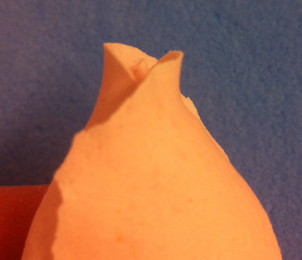 Deretter bruker du en balltool som du drar rundt kanten av rosebladet, denne lager da frynsete kant. Slik lager du alle rosebladene.